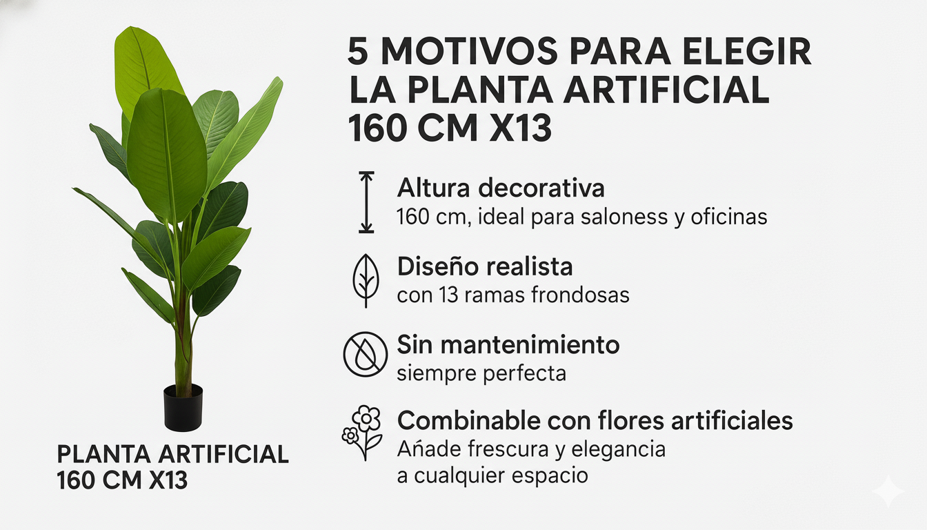 Compra ahora tu planta artificial 160 cm X13 y disfruta de la belleza de la naturaleza sin mantenimiento. ¡Añádela al carrito y transforma tu hogar con un toque verde irresistible!