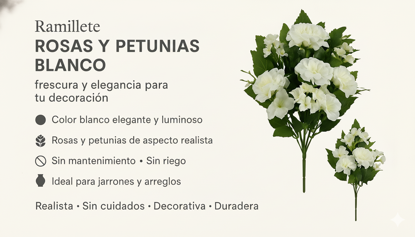 | Beneficios | Realista · Elegante · Duradero · Fácil de colocar |