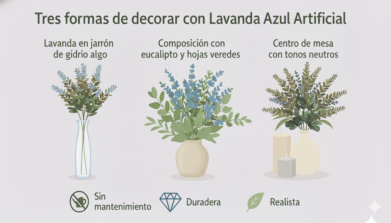 | Tipo de flor | Lavanda artificial color azul con follaje verde |